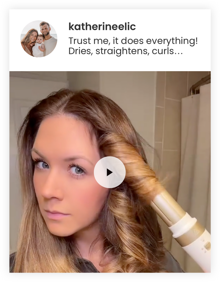 "This product is a perfect alternative for the Dyson/Shark, it works amazing !!! I have super fine, thin hair that doesn't hold a curl for long and it stayed all day. I can do my whole head of hair in 15 minutes and it lasts for almost 2 days! It's also a blow dryer so it has many functions.I love that it comes with a case too." – Charlotte P. ⭐⭐⭐⭐⭐